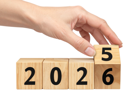 Year 2025 changing to 2026 with wooden cubes