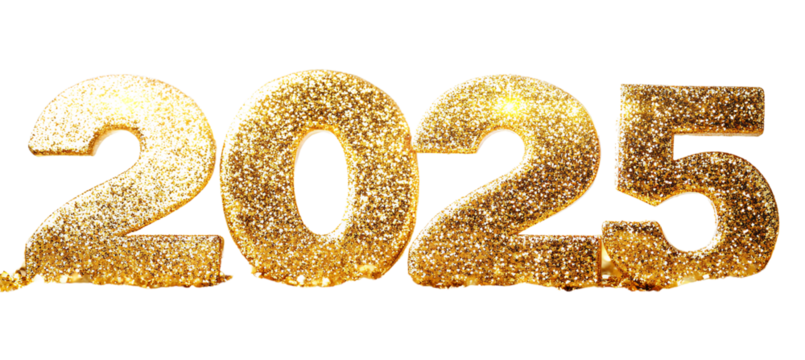 2025 in golden glitter numbers isolated on a Transparent background .png