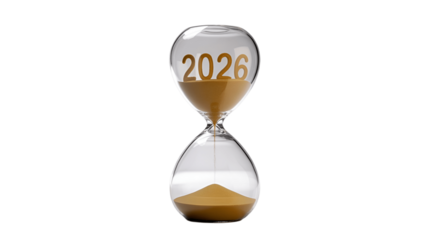Hourglass with 2026 year in sand isolated on transparent background