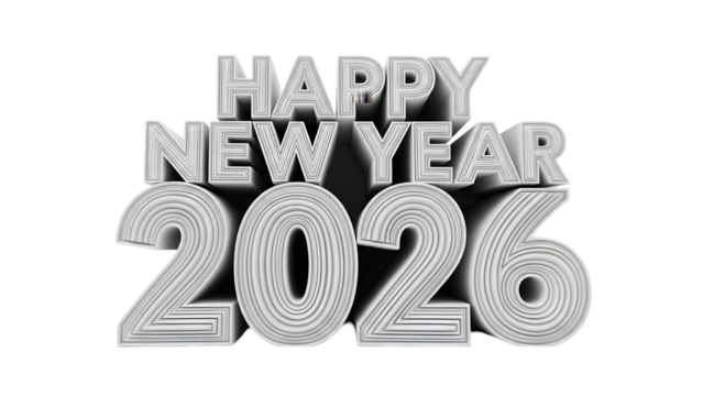 2026 Happy New Year – 3D Gold Numbers Isolated on White Background