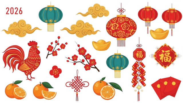 Chinese New Year 2026 Celebration Elements Decorations Set