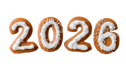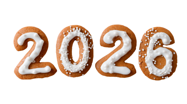 The year 2026 written in glowing golden numbers with a sparkling effect, isolated on a transparent background, symbolizing the future, new beginnings, and celebration