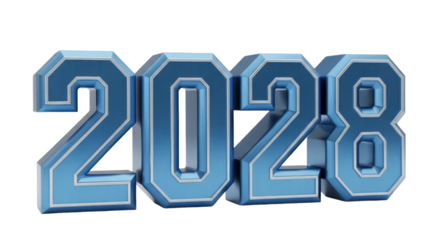 Isolated 3D rendering illustration of the year 2028, future event coming soon in perspective view