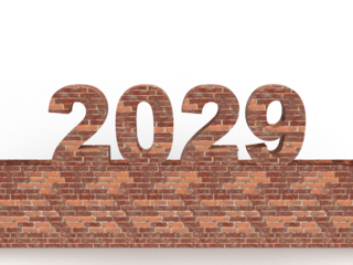 Brick New Year 2029 set on a stone wall in front. Post idea for a construction company. 3d rendering
