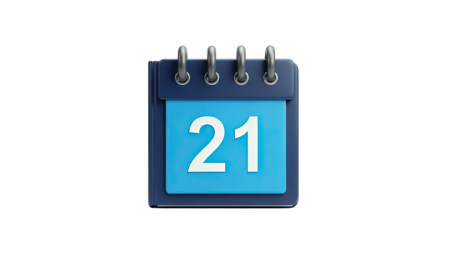 Blue calendar icon with 21 on transparent background