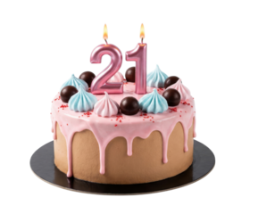 Delicious 21st birthday cake with chocolate drizzle transparent background sweet treats celebratory environment festive viewpoint