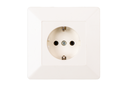 Gray plastic electric outlet. Close up view of standard socket 220 volts. Isolated on a transparent background. 3d illustration.