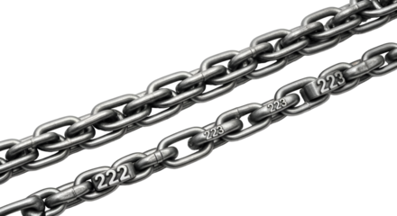 Two Metal Chains with Numbered Links on Black Background