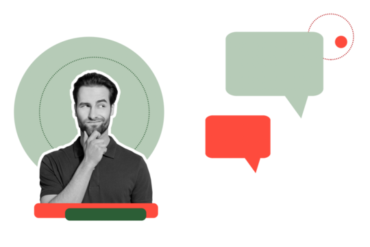 Creative photo poster trend art collage image of doubtful man hold chin think solution bubble communication chat notification icon