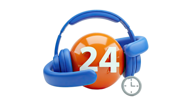 Dynamic 24 hour service icon symbolizing constant availability and support