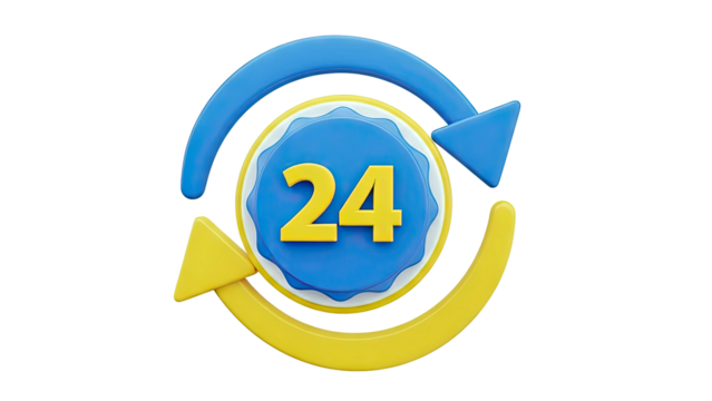 3D 24 Hour Service Emblem with Arrows on transparent background
