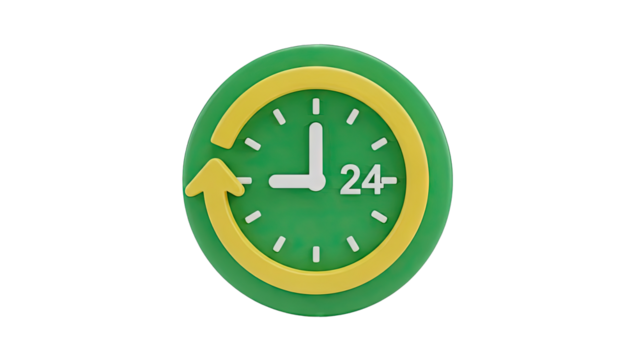 24 Hours Clock on transparent background