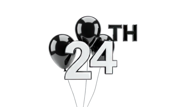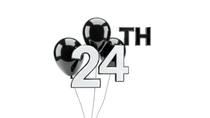 24th Anniversary Celebration with Black Balloons on White Background