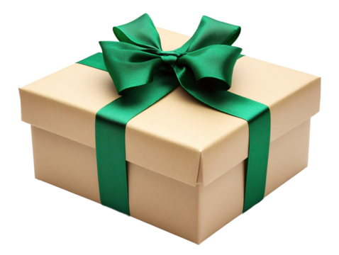 a gift box with a green ribbon