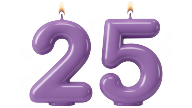 Silver foil number balloons forming twenty-five, floating against transparent backdrop, highlighting milestone celebration decor