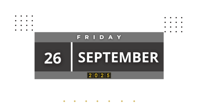 September 10 on desk calendar with transparent background