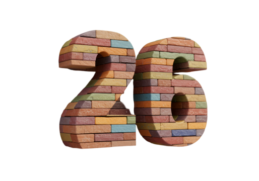 3D Illustration Of Number Twenty-Six With Colorful Brick Texture Against Black