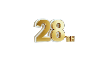 Golden 28th Anniversary Number on White Background