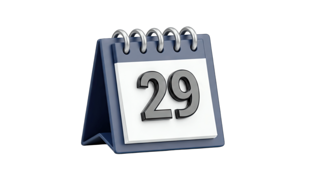 3D Calendar Showing Date 29 on White Background