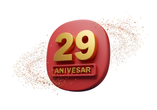 3D Render Illustration of Gold 29th Anniversary Celebration on Red and Black Background
