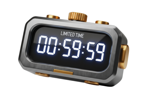 A sleek digital timer displaying a countdown of fifty nine minutes and fifty nine seconds