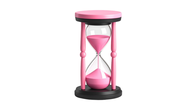 Rendered hourglass with pink sand flowing in a 3D image, set against a black backdrop