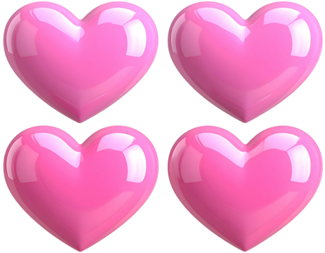 Four glossy pink hearts arranged in a 2x2 grid