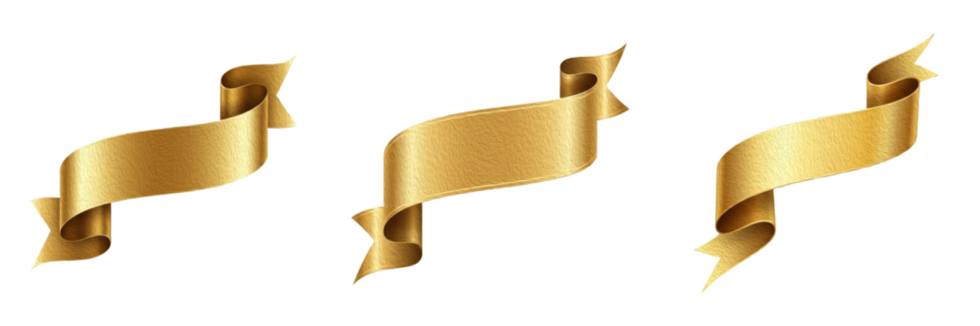 gold bow ribbons, three different styles, isolated on a Transparent background PNG