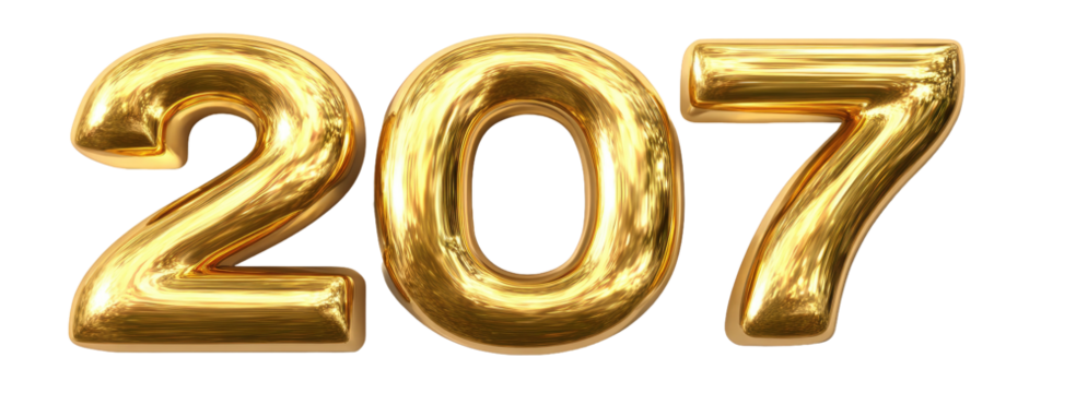A gleaming golden rendering on black backdrop, showing the digits "207" in a volumetric, bubbly style