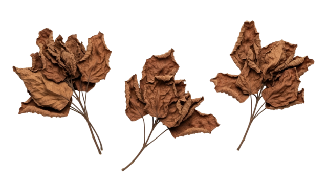 Three dry brown leaves isolated on white background