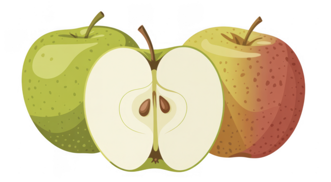 Cartoon of three apples green yellow isolated on a transparent background
