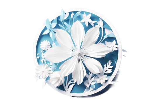 Spring March card Greeting Women's Flower White bouquet Happy Origami Day frame illustration Paper text Circle Cut Mother's blue background Floral Space Summer Wedding Nature