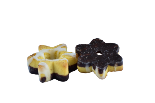 Cookies with chocolate lie on a white background.