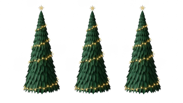 Christmas Tree Trio: A vibrant array of three Christmas trees, adorned with twinkling lights and crowned with radiant stars. Perfect for holiday themes and festive projects.