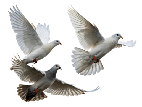 Group of three white doves in flight symbolizing peace, freedom, and unity concept. isolated PNG with Transparent Background