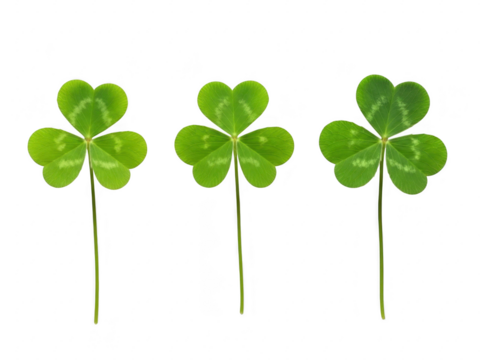 Four leaf clover and three leaf clover isolated closeup plant leaf shape heart decoration