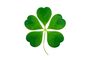 Three vibrant green clover leaves, symbolizing luck and springtime, isolated on a clean white background