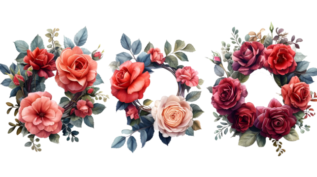 Arrangement of flowers and roses Isolated on a white background, this floral wreath or photo invitation greeting card mockup features an empty blank space template for wedding and romantic anniversary