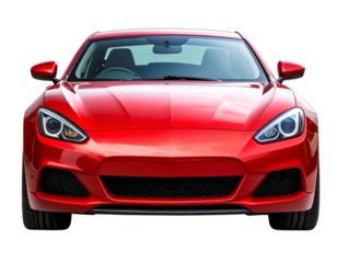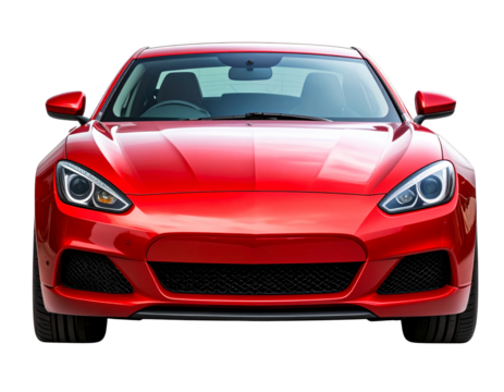 Front view of a sleek red formula 1 racing car isolated on transparent background