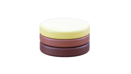 Three white cylindrical pedestals of varying heights arranged closely together isolated on transparent background