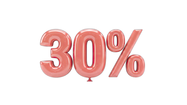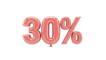 3D 30% Off Sale Banner with 3D Text on transparent background