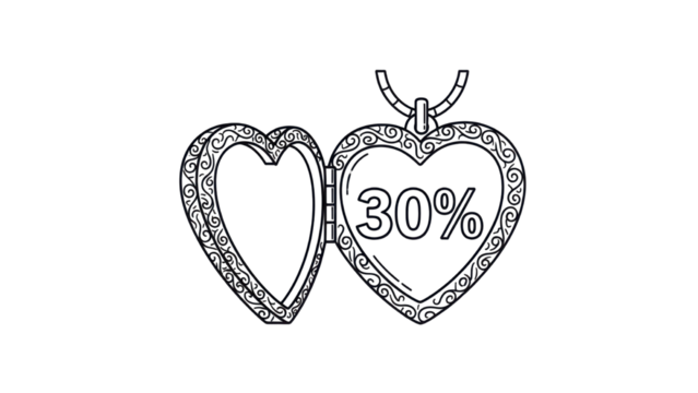 Black Outline Vector of an Open Ornate Heart Locket Necklace with "30%" Discount Inside isolated PNG with Transparent Background