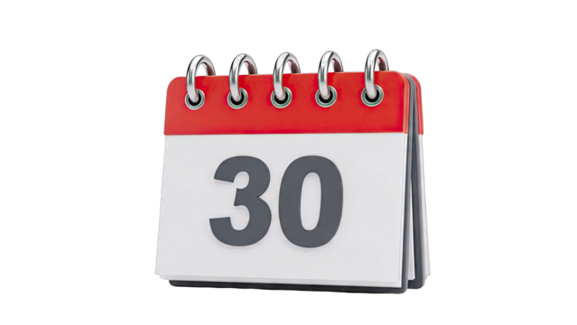 Isolated Calendar with 30 Days Text