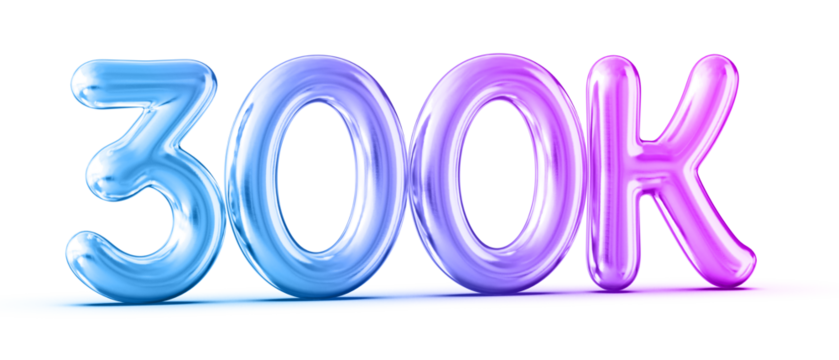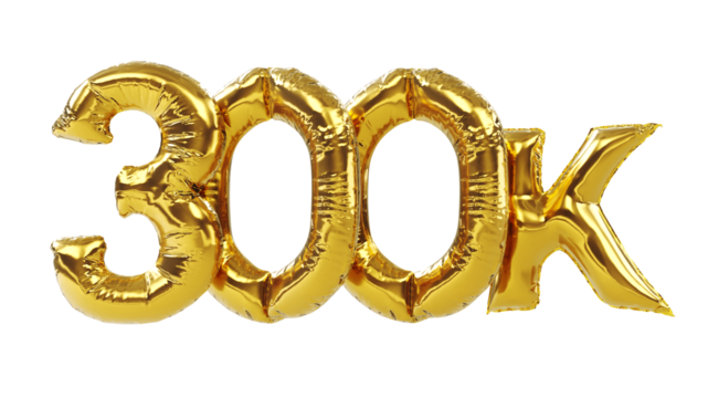 3D render of 300k or three hundred thousand golden numbers isolated on white background, 300k followers celebration.