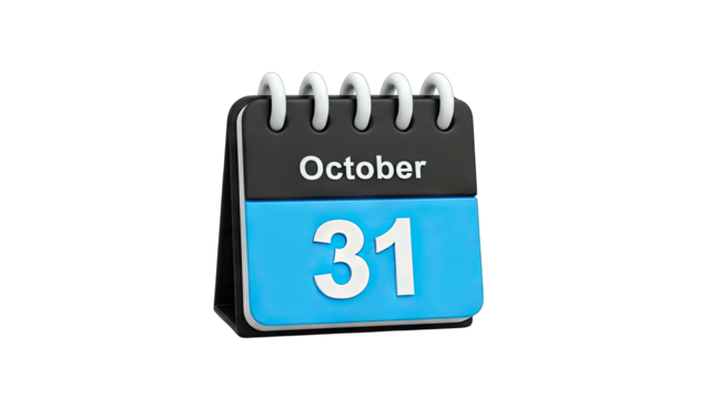 3D Desk Calendar Showing October 31st on transparent background