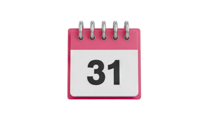 3D Calendar Icon with Number 31 on transparent background