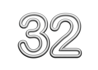 The shape of the number 32 is made of cement isolated on transparent background. Suitable for birthday, anniversary and Memorial Day templates