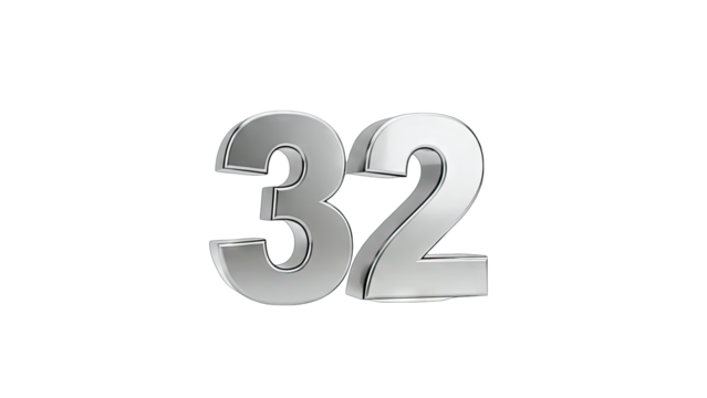 Bold Vibrant Red Number Thirty two Number 32 With Sleek Metallic White Background 3D Illustration