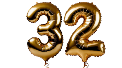 Golden foil number thirty two Balloon 3d model for Celebrations or invitations