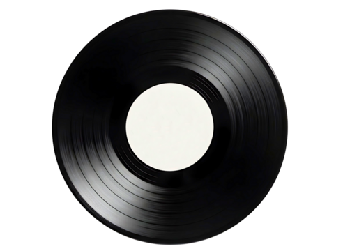 Vinyl record with blank white label, symbolizing music, audio, vintage sound, and retro entertainment on transparent background